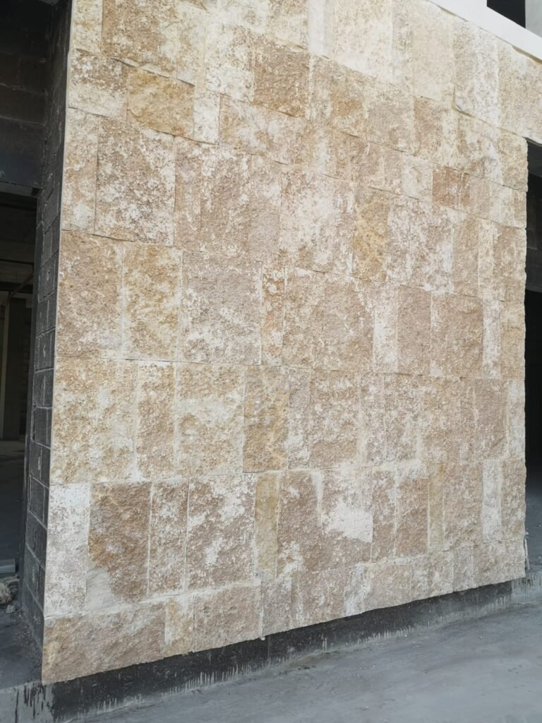 الواجهة هي أول عنصر يراه العميل أو الزائر، واستخدام حجر وجه الجبل الأبيض يعطي انطباعًا بالفخامة والمتانة. المشاريع التي تعتمد على الحجر الطبيعي في الواجهات غالبًا ما تحافظ على قيمتها السوقية لفترة أطول، وتكون أقل عرضة لأعمال الصيانة المتكررة مقارنة بمواد التشطيب الصناعية.